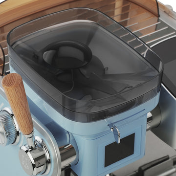 The machine has an in-built burr grinder, which offers 3 preset dosing modes (weight-based, time-based, manual) and 8 adjustable speeds to tailor grind size for espresso, drip, or pour-over. The machine’s integrated scales allows the user to monitor the weight of the espresso shot in real time.